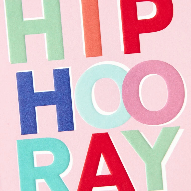 • Floral cover message: (blank); Script lettering cover message: You’re the best. For real; Rainbow stripes cover message: Happy Day, Happy Year, Happy You!; Block lettering cover message: Hip Hip Hooray.