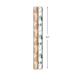 • Pack includes 2 wrapping paper rolls in assorted winter pine designs: white pine illustrations on kraft and snowy forest scene on white.