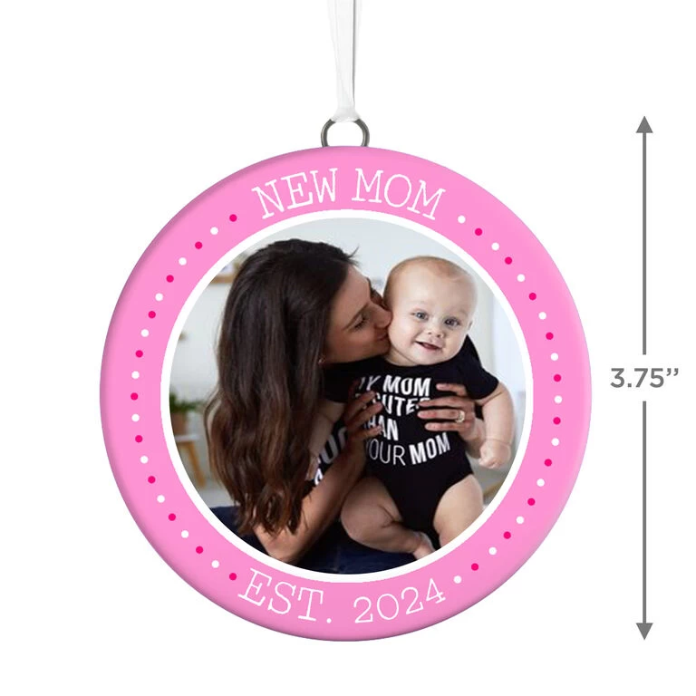 Celebrate the arrival of a little bundle of joy and the cherished role of new mom with this sweet ceramic Christmas tree ornament. Choose from a variety of pretty designs and color palettes to frame a photo of mom and baby, then customize with the year and name, or a personal message. Commemorate this treasured chapter in your life, or give the ornament as a memorable gift to a special new mom you know.