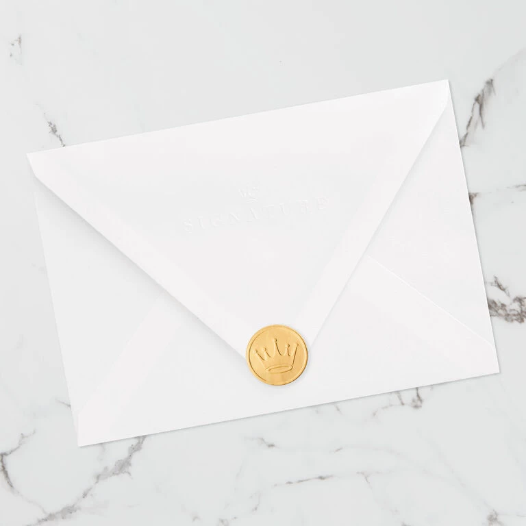 - Includes one card and one envelope with a Gold Crown seal. Envelope color may vary.