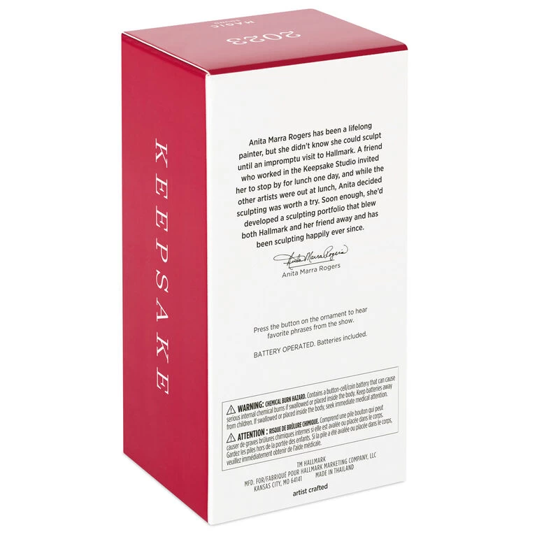 - Key Features: Press the button on the Magic Sound ornament to hear favorite phrases from the show.